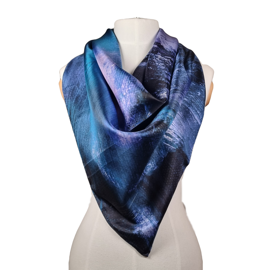 My silk scarves carry a unique story. They are adorned with expressive patterns inspired by my abstract artwork, which draws inspiration from the Norwegian wilderness. Each scarf is a small masterpiece in itself, inviting you to carry the beauty of nature and the magic of art in your everyday life.