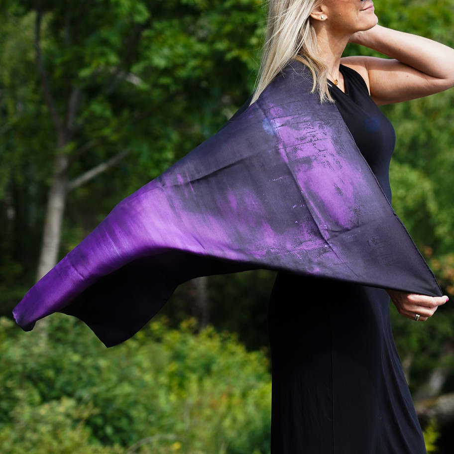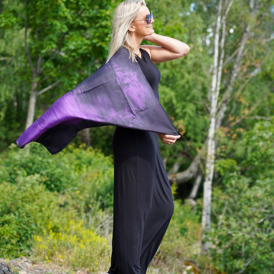 My silk scarves carry a unique story. They are adorned with expressive patterns inspired by my abstract artwork, which draws inspiration from the Norwegian wilderness. Each scarf is a small masterpiece in itself, inviting you to carry the beauty of nature and the magic of art in your everyday life.