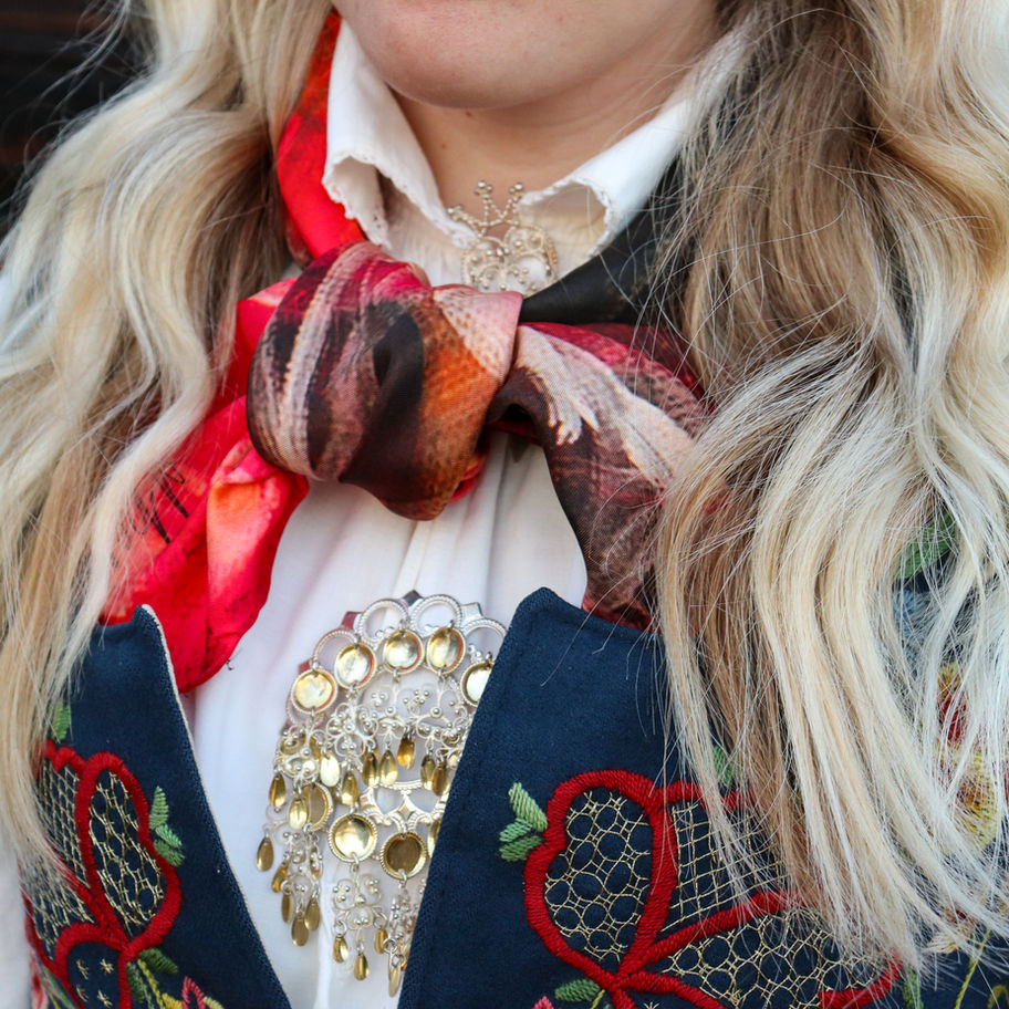 Silkeskjerf 75x75 cm – kunst til bunad og hverdag